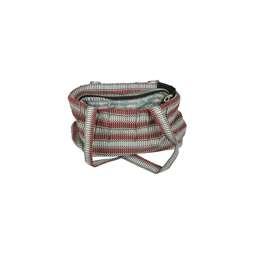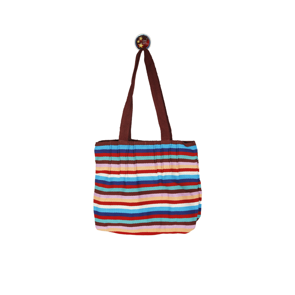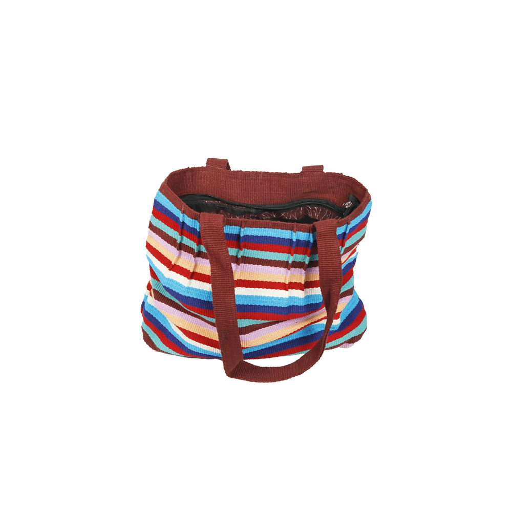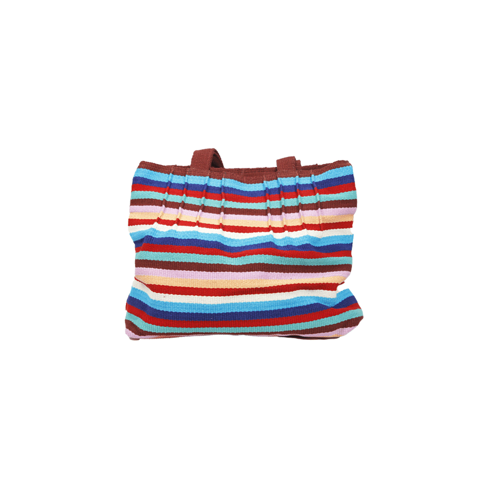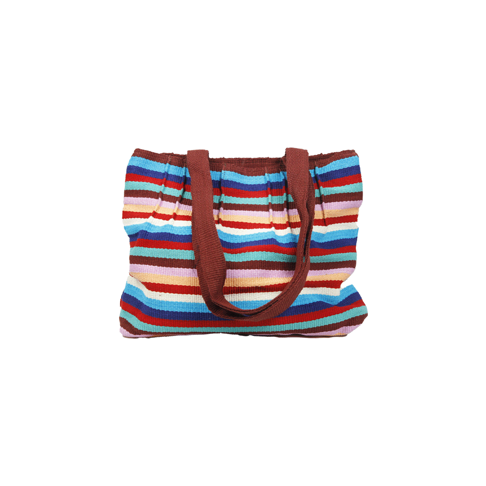 Handmade from beginning to end using 100% organic cotton thread. The cotton thread is first dyed, sorted and woven using a traditional back strap loom. Then each bag is hand sewn by the artisans. Each piece is individually made and is of very high quality. This bag is very well made to withstand daily use. This handmade cotton Tote bag is very sturdy and has ample space for daily use.