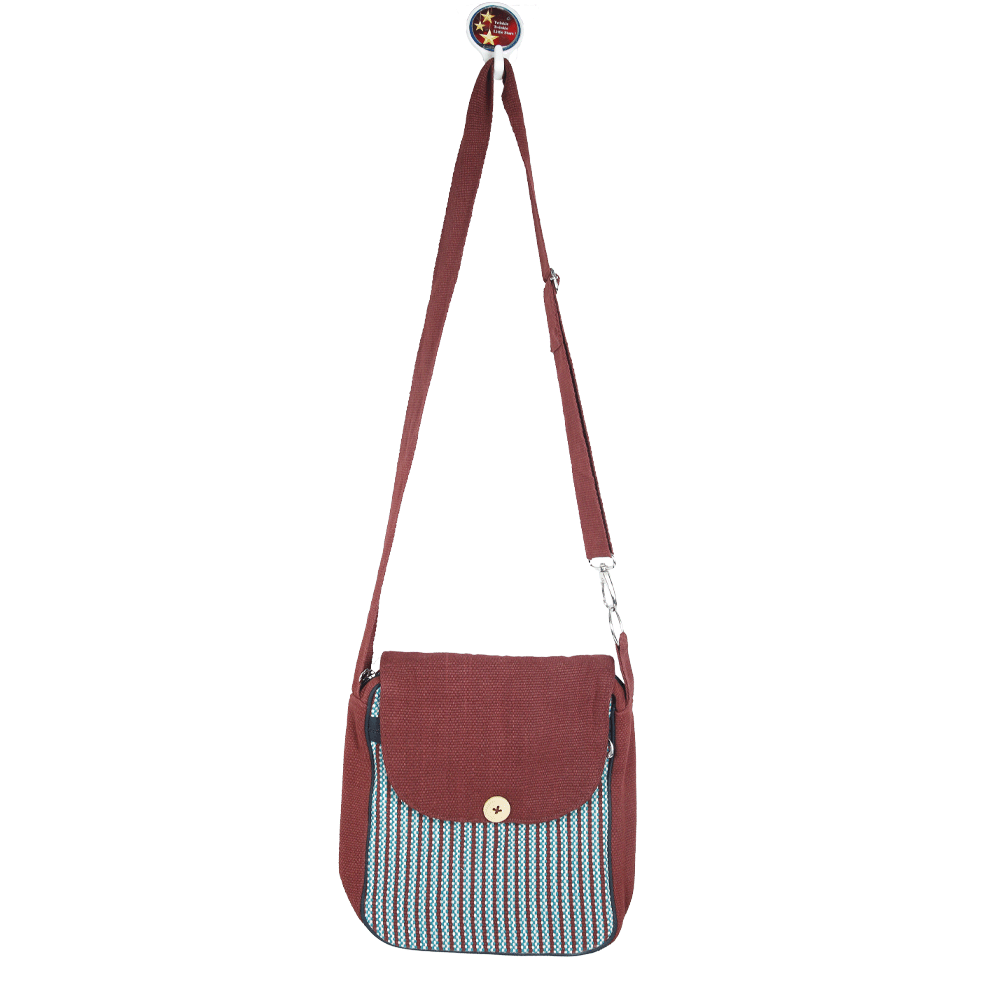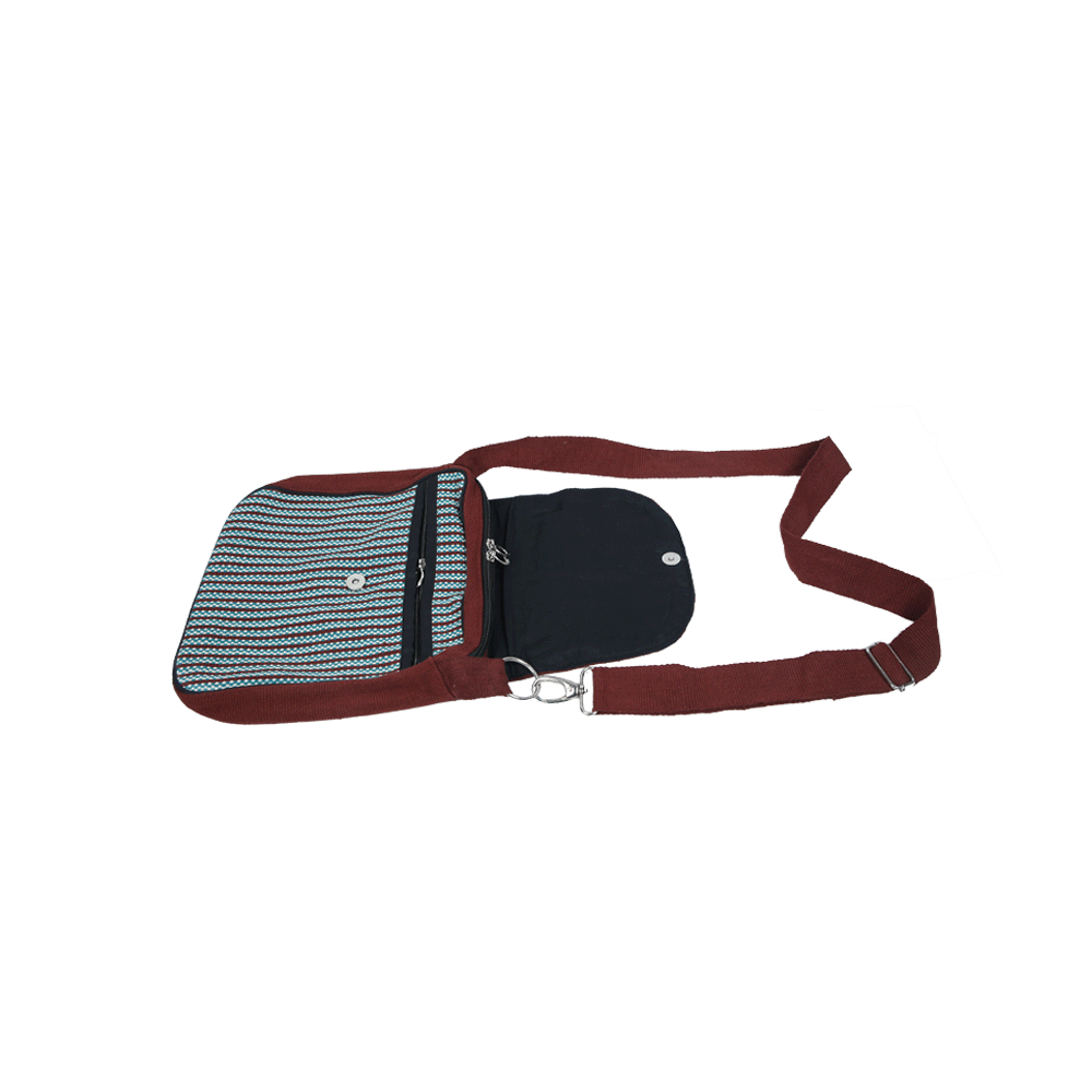 Handmade from beginning to end using 100% organic cotton thread. The cotton thread is first dyed, sorted and woven using a traditional back strap loom. Then each bag is hand sewn by the artisans. Each piece is individually made and is of very high quality.This bag can be worn as a shoulder bag or cross body bag. This handmade bag is very sturdy and well made and is perfect for daily use. It has ample space to accommodate all your daily necessary items.