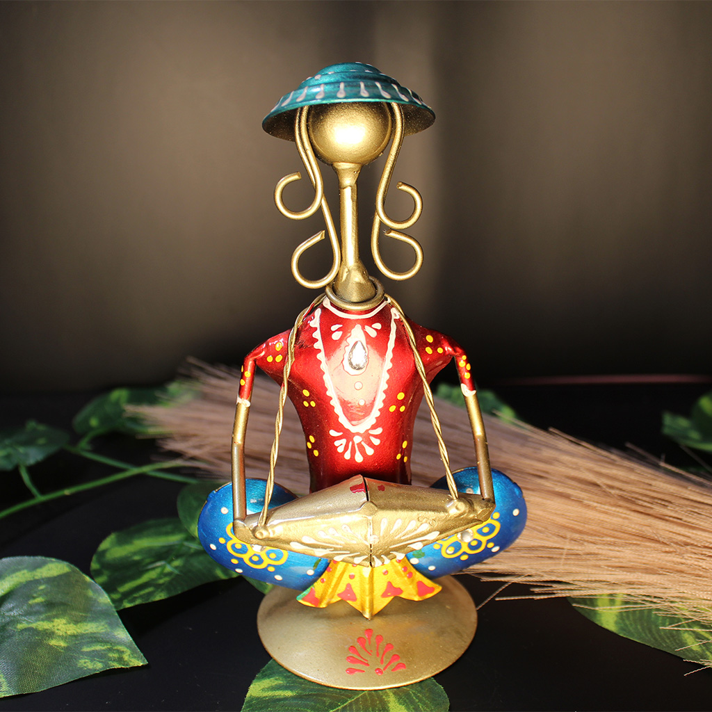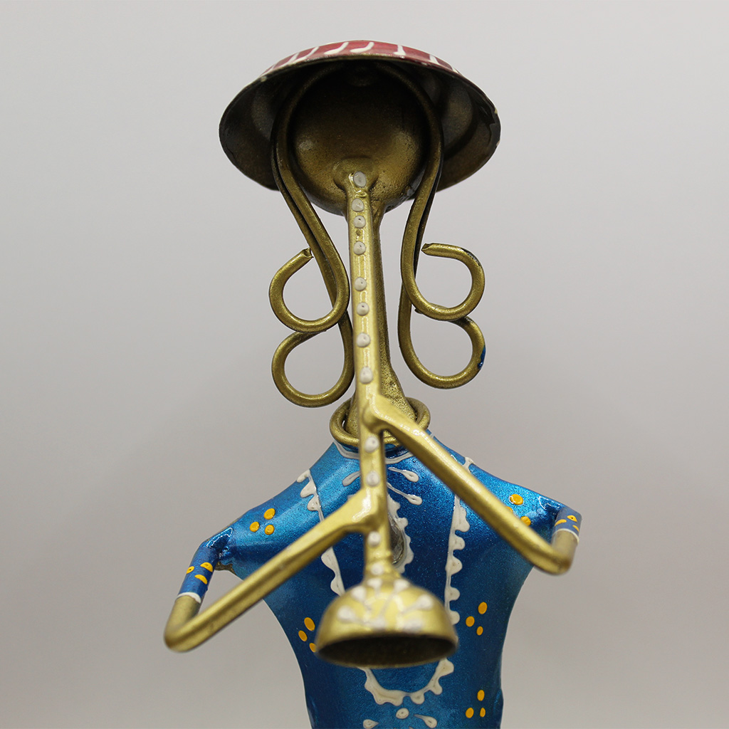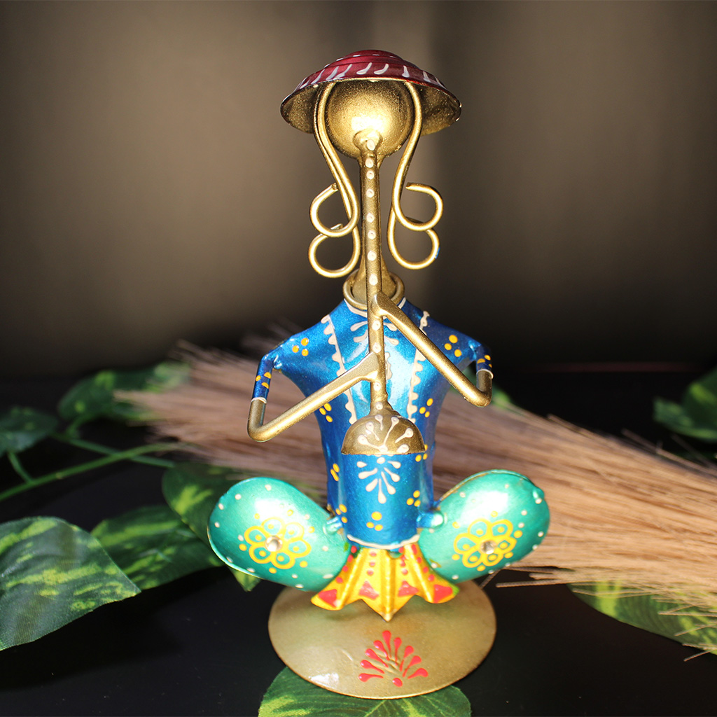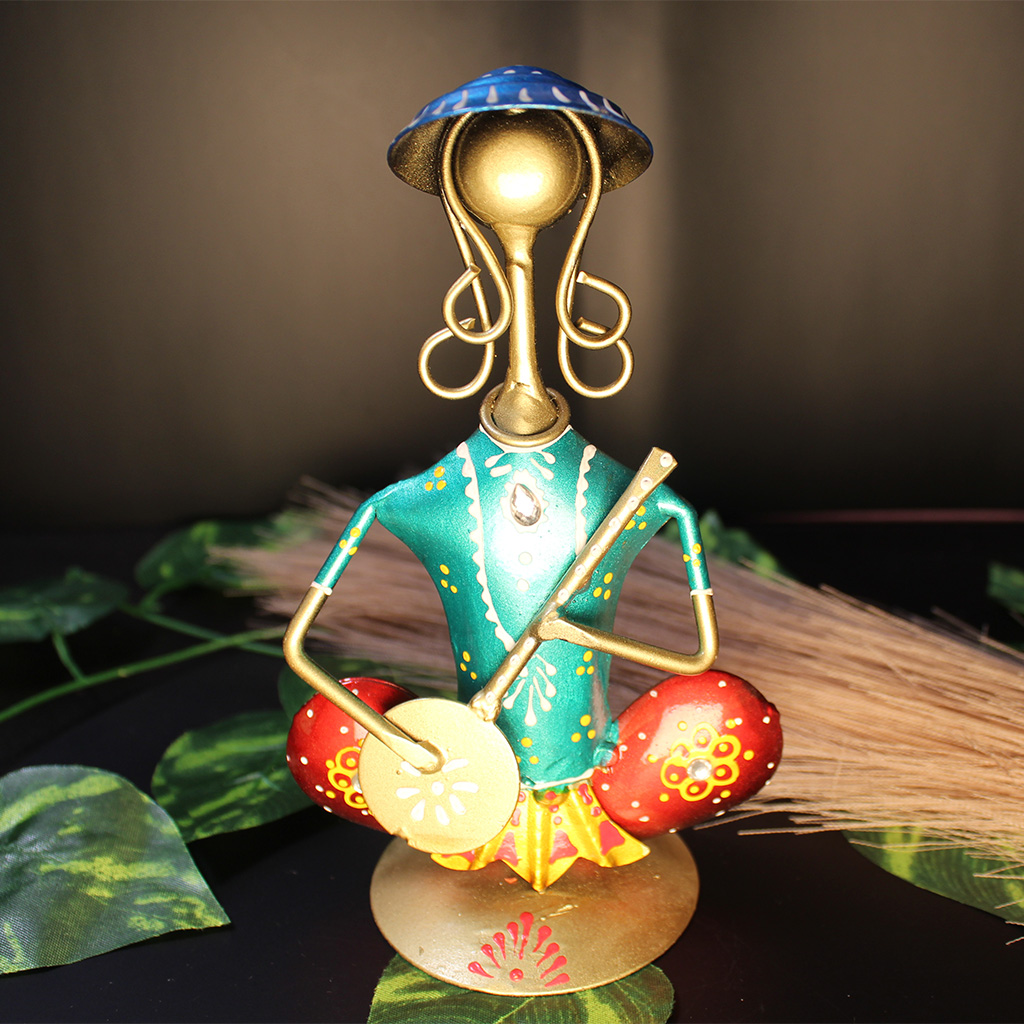 This set of 3 Musicians depict the tribal outfits and musical instruments of Rajasthan, India. Each figurine is handmade featuring Meenakari artwork. Intricately handcrafted by talented artisans, these figurines will make a beautiful and unique addition to your home decor. Can be used as a centerpiece or displayed alongside other unique and beautiful artwork.