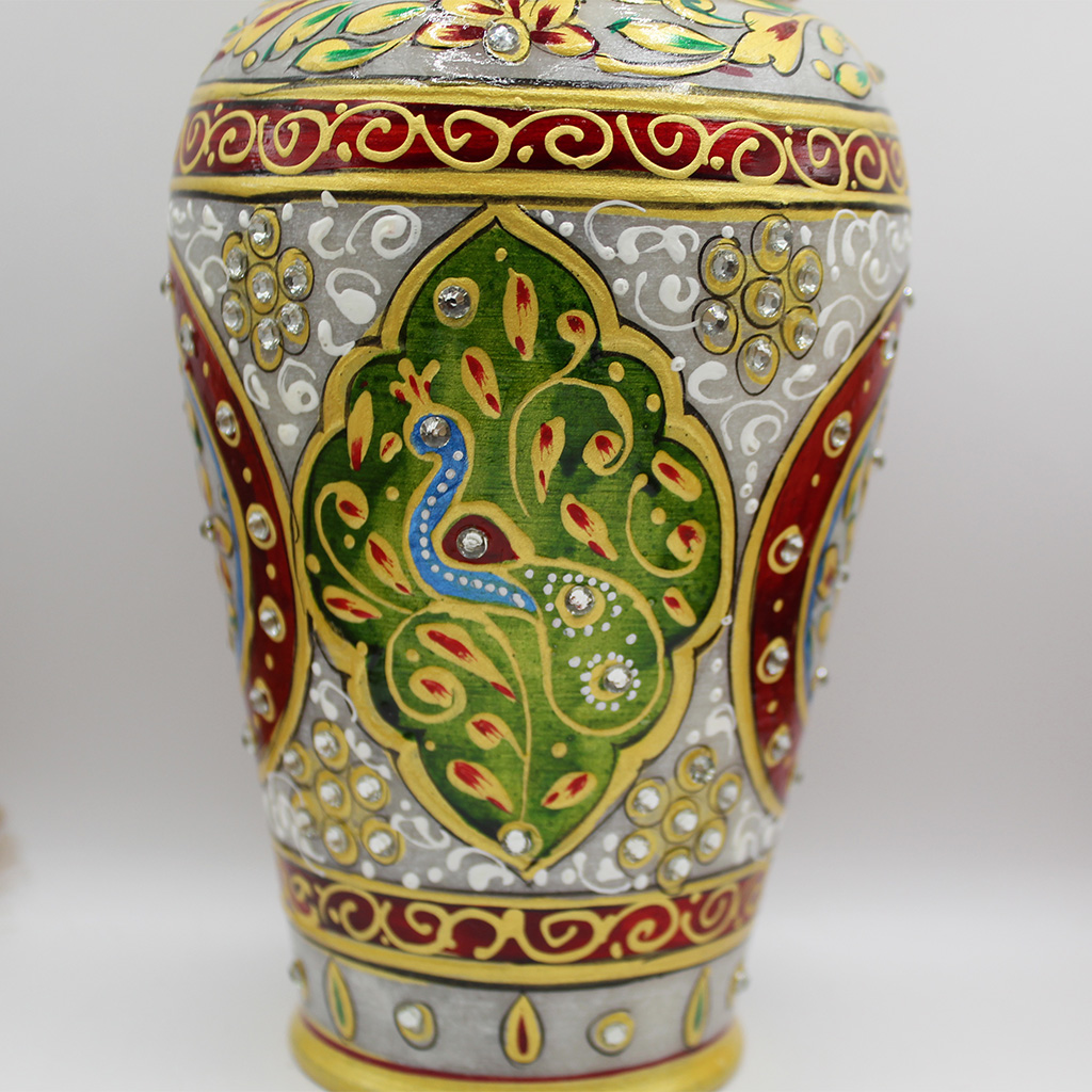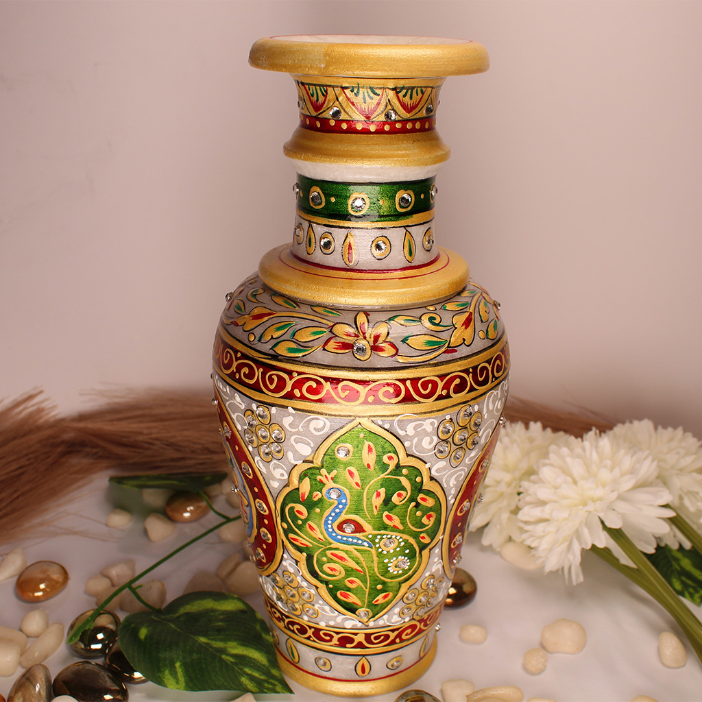 Marble Meenakari Vase Green Peacock